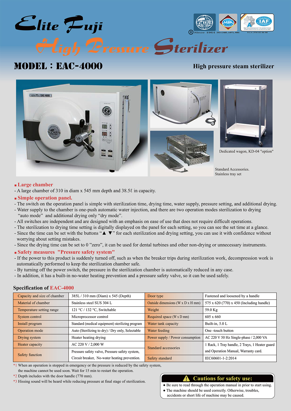 TOP > Product > High Pressure Sterilizer(Medical Autoclave) > EAC-4000(310φ 38.5L)Built-in Dry Pump