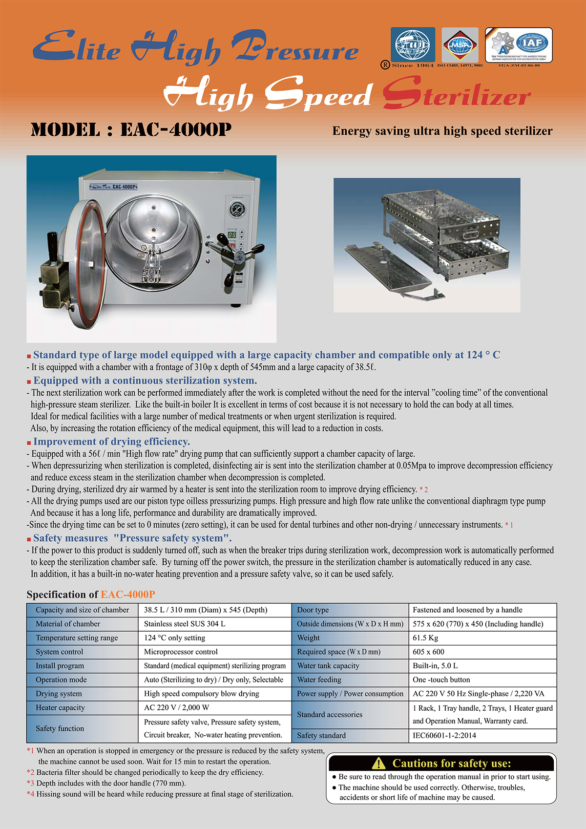 TOP > Product > High Pressure Sterilizer(Medical Autoclave) > EAC-4000P(310φ 38.5L)Built-in Dry Pump 121℃ Only