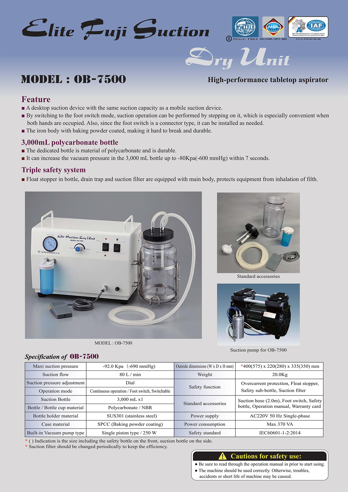 OB-7500(Table top)Bottle Capacity 3,000mL