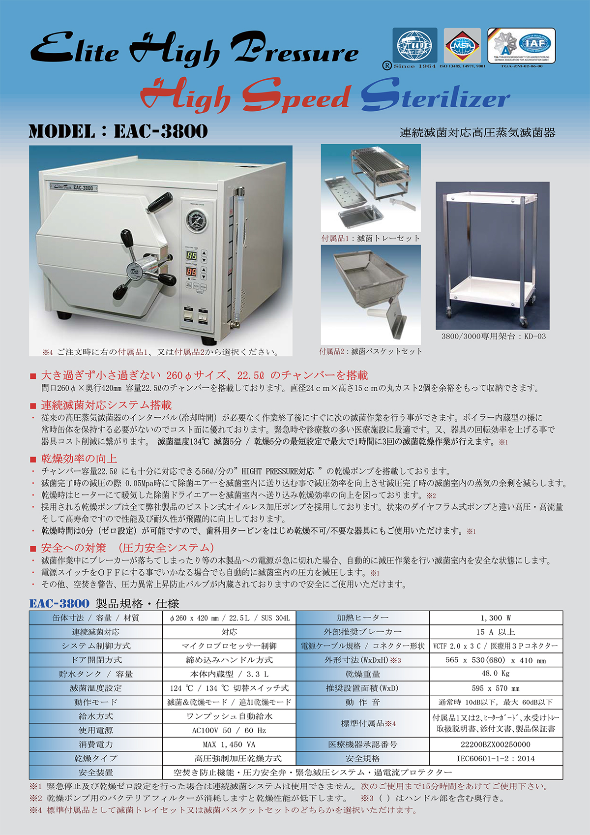 EAC-3800(260φ 22.5L) 乾燥ポンプ搭載